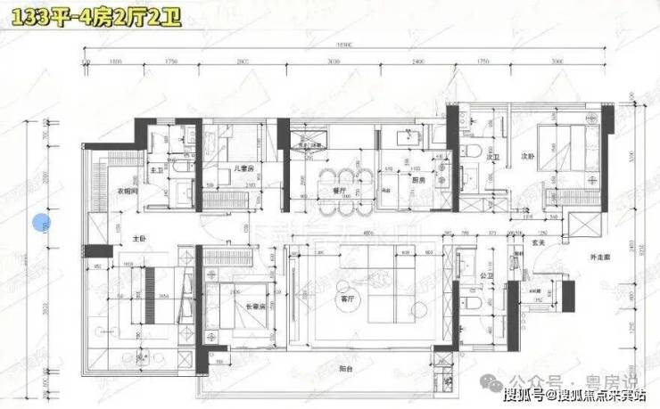 133㎡的4房2厅2卫,设计的是竖厅南北通透格局,进门入户玄关,客厅5.4米开间,餐客厅分离设计,分别做到了主卧24.5㎡/次卧10.2㎡/次卧8.96㎡/次卧7.84㎡(实测面积),客厅连接次卧出12.3m²的观景大阳台,L型中式+岛台灵动式厨房,公卫三段式干湿分离,得房率约78.27%(不含赠送),阳台主朝东南或西南向。靓点:超大客餐厅南北对流+8.2米长超大观景南向阳台,超大主卧+270°无柱转角飘窗+进门独立玄关800库。
