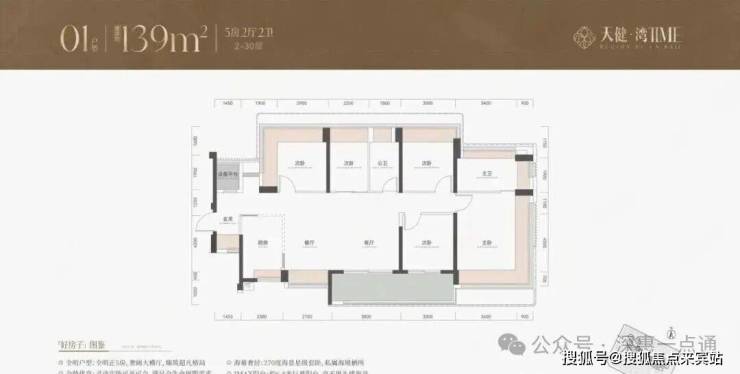 139㎡5房2卫:同样像瑧誉府143㎡横厅户型,多了一个房间。公卫旁的次卧面积稍小,可作为书房。主卧没有衣帽间,少了点豪奢感,但是整体上还是非常不错,很实用的5房。