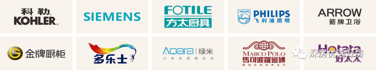 品牌家居: 方太厨具、科勒卫浴、金牌橱柜、飞利浦灯具、西门子插座、箭牌浴室镜柜 鞋纳柜等;