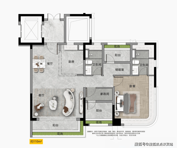 “宽幕视野” 南北通透双视野,主卧270°转角飘窗