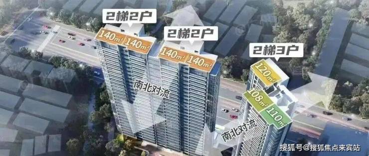 2号楼为两梯三户,分别有三种户型,108/110方做三房,120可做四房。3栋(3A/3B)则是140方可做四房户型,板楼设计,两梯两户,是楼盘的主打户型,货量最多。