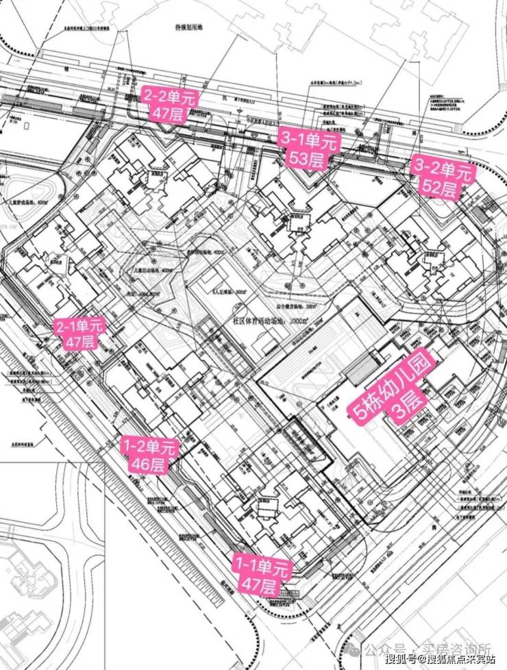 合正方州瀚府,总占地面积约3.05万㎡,总建筑面积约27.4万㎡,计容建筑面积约20.11万㎡,容积率6.6,绿化率40.01%,共由6栋总高46-53层的住宅组成,其中1栋1单元/2栋1/2单元住宅47F,1栋2单元住宅46F,3栋1单元住宅53F,3栋2单元住宅52F,5栋是1所18班制幼儿园,园区内规划有多个儿童游戏场地,羽毛球场,足球场。