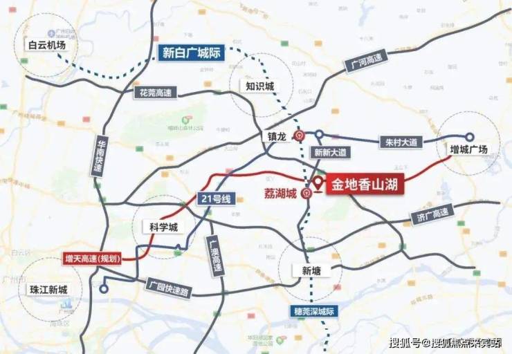 穗深城轨荔湖城站(新白广段,在建中)就在家门口,一站换乘广州地铁21号线(镇龙站换乘),快线3站到天河,更可直达广州白云机场和深圳宝安机场;出门即享花莞高速(已开通)、增天高速(已动工)双高速出入口,直达天河珠江新城;新新大道(改造中)、广园快速路和广汕快速路等,构建四横四纵城市快速交通网。