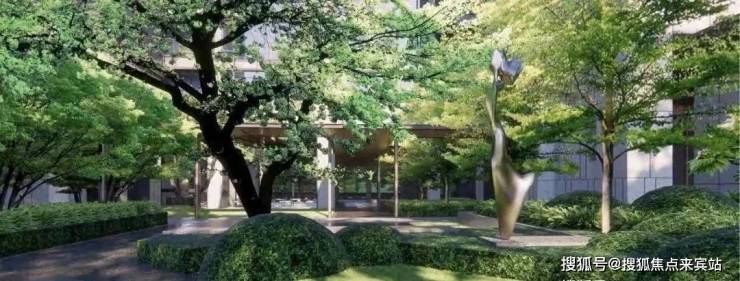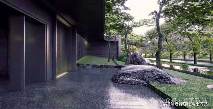 入口50米横向面宽,近6米的高跌水景墙与双层门楼让回家有了一份尊贵与隐奢;随着动线经过穿林,见山,伴水,来到模仿山石色调与铜色金属融合打造的酒店式大堂,一路草木清香、青石铺地、水系流动,自然的隐奢之美扑面而来。