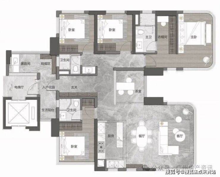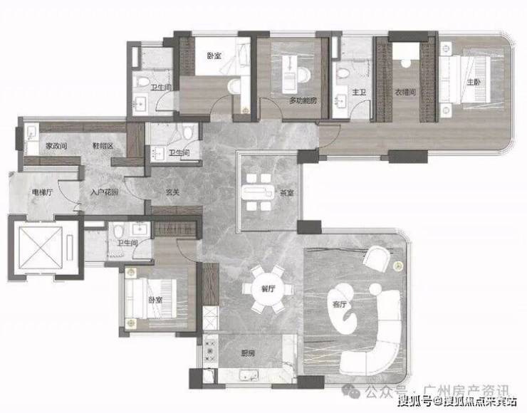 做到四房+1空间,还有双主套,甚至三主套的设计、专属电梯厅、超大入户玄关,简直不可思议!