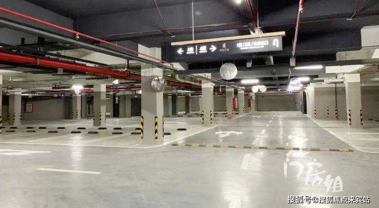 最后来到车库,黑色天花顶和灰色地面,与海悦天铸的深沉主色调一脉相承,看惯了绿油油的常规车库设计,这个看着还挺舒服。