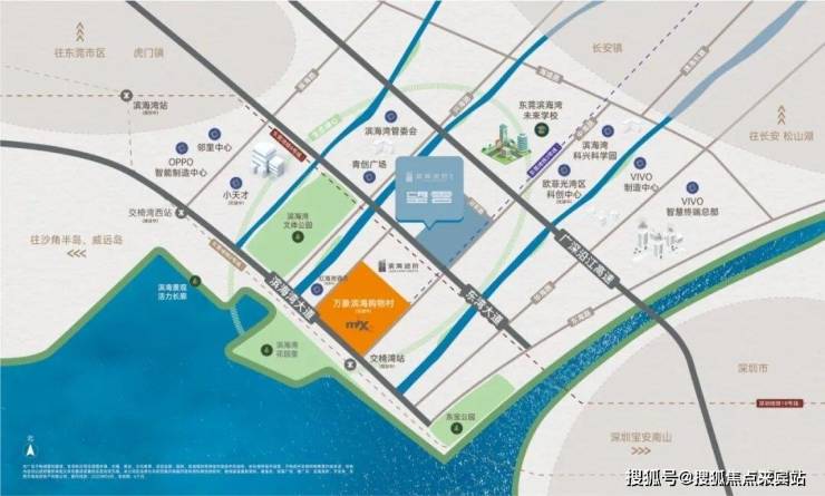 很多人较为担心的一点是,周边的交通会很不方便,项目位于滨海湾产业共享轴及东湾大道核心发展轴之上,处于真滨海湾核心区域。通过东湾大道与滨海湾大道,串联整个滨海湾;距离广深沿江高速长安出口约4公里,快速直达深圳、广州。