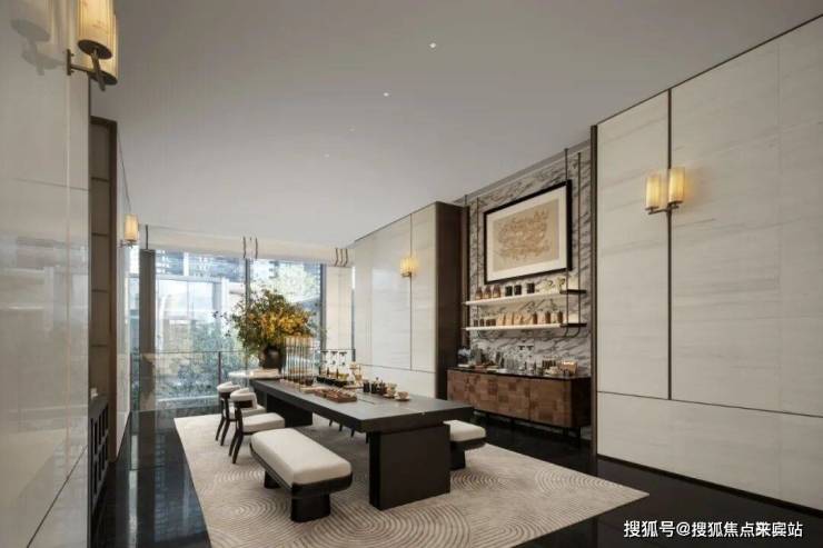 会所设置茶室空间,以“动静分离”设计满足不同年龄层需求,通过以茶会友的轻社交模式,帮助新业主快速融入社区。