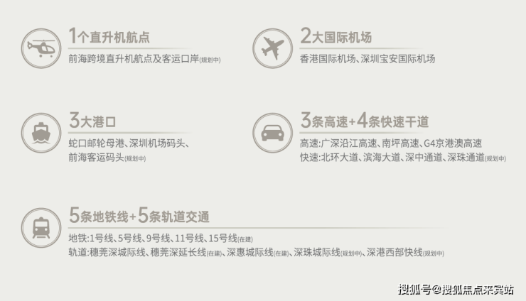 打造前海国际交通枢纽,“海、陆、空、铁、轨、直”六大维度交通体系,便捷深港往来,加速粤港澳大湾区互联互通,执掌全球商务效率。