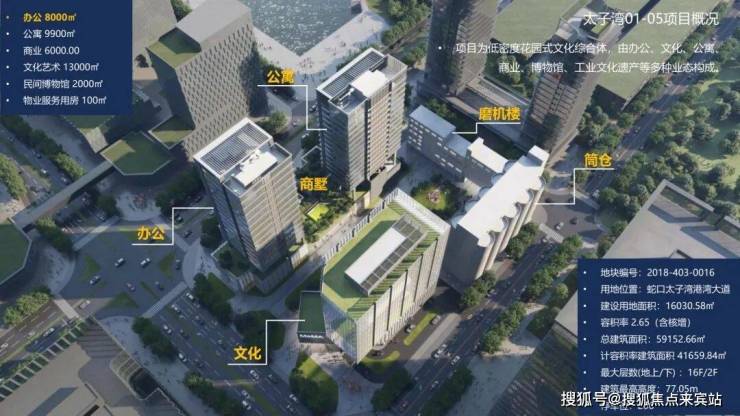 项目总占地:约1.6万㎡(文化楼1栋、办公楼1栋、商墅7栋、公寓1栋)