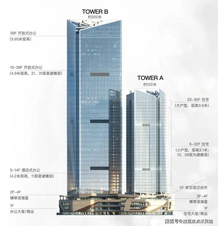 ▷整体业态:集商务写字楼、高端商业、空中会所,以及拥有70年产业高端住宅等多元业态于一体的金融岛尖地标综合体