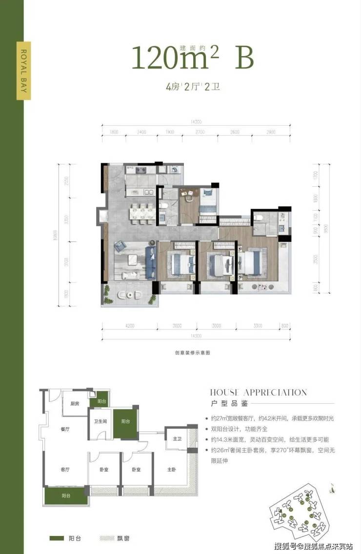 户型亮点:约 14.3 米南向面宽,灵动百变空间,给生活更多可能