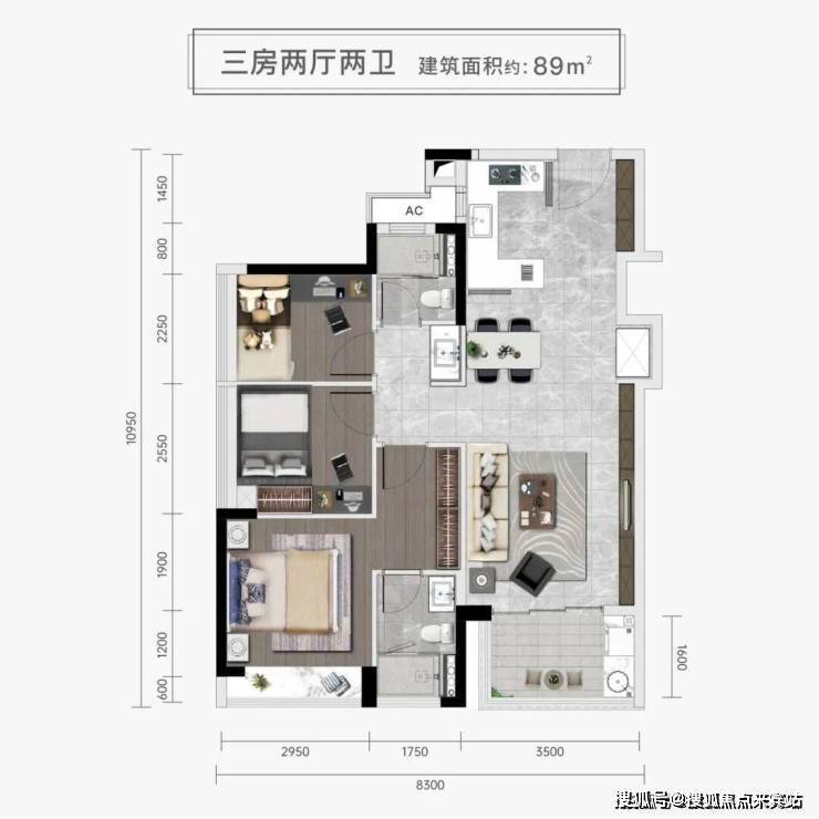 ◎户型面积:89㎡三房,104㎡四房,117㎡四房