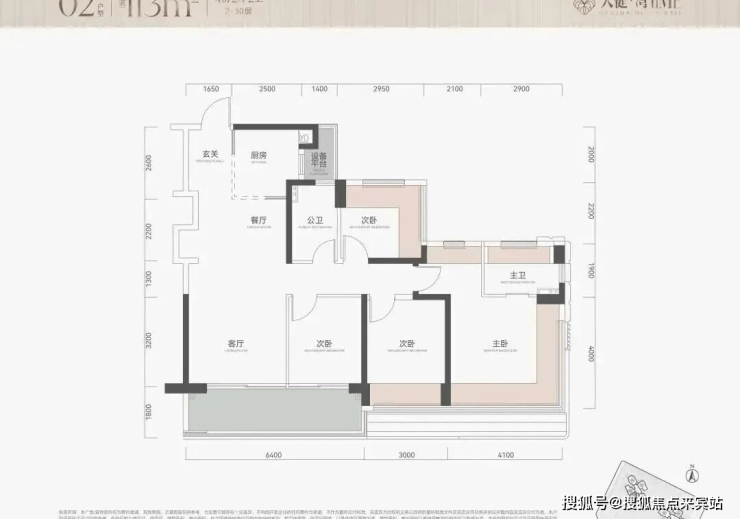 113㎡4房2卫,竖厅户型,朝南看海,6.4米宽大阳台;