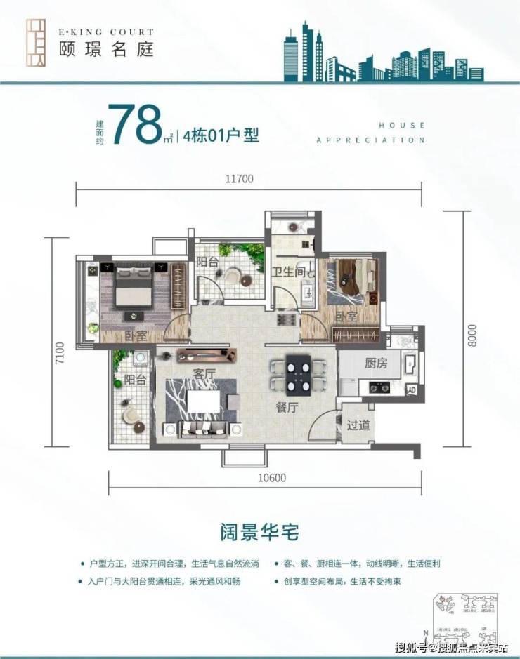 全景阳台,客餐厅一体化设计,营造显赫之感