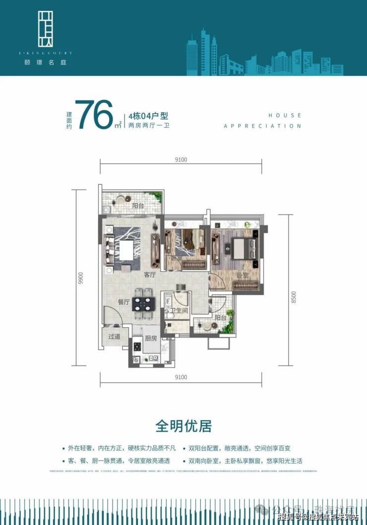 双阳台设计,通风,采光,景观俱佳