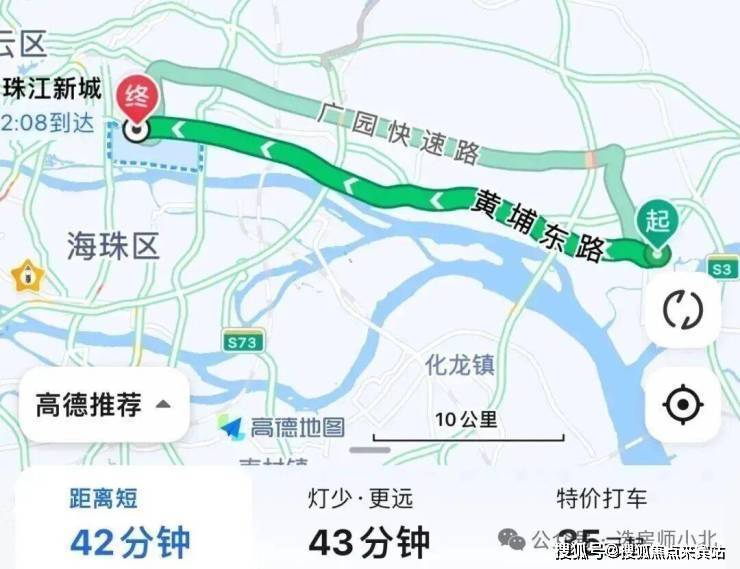 到珠江新城:出小区走黄埔东路转黄埔大道,全程24公里,不堵车情况下耗时42分钟左右。
