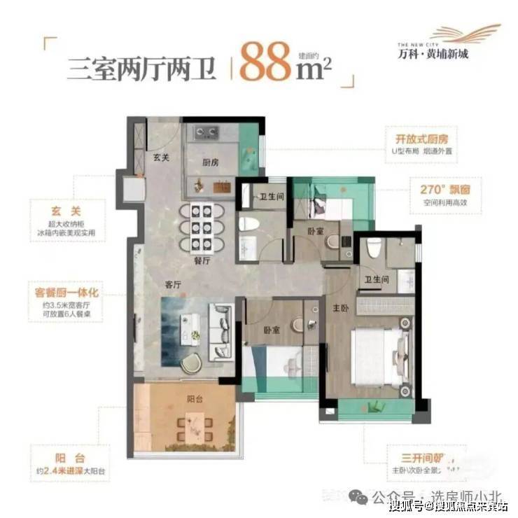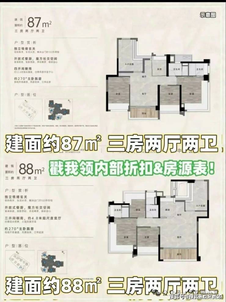 中央公园组团在售7栋的88平三房户型,这栋是现房,目前剩下40楼以上,总价250万左右,8栋的房源比较多点,8栋户型为86平和114平,其中86平三房总价230万起,114平四房总价310万起,户型图如下