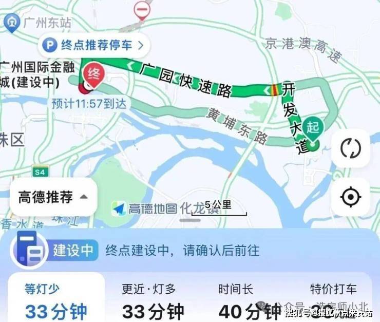 到金融城:走开发大道转广园快速,或者走黄埔大道去金融城,约20来公里,不堵车情况下,耗时33分钟左右。