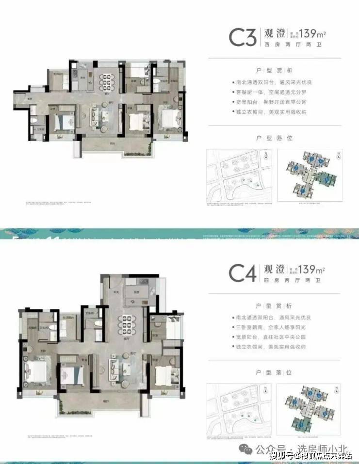 观澄组团目前主要在售3座,这栋交楼时间为26年3月份,户型有123和139平四房两卫,其中123平总价330-360万左右,139平总价390-440万左右,98平三房户型已经全面售罄!在售户型图如下: