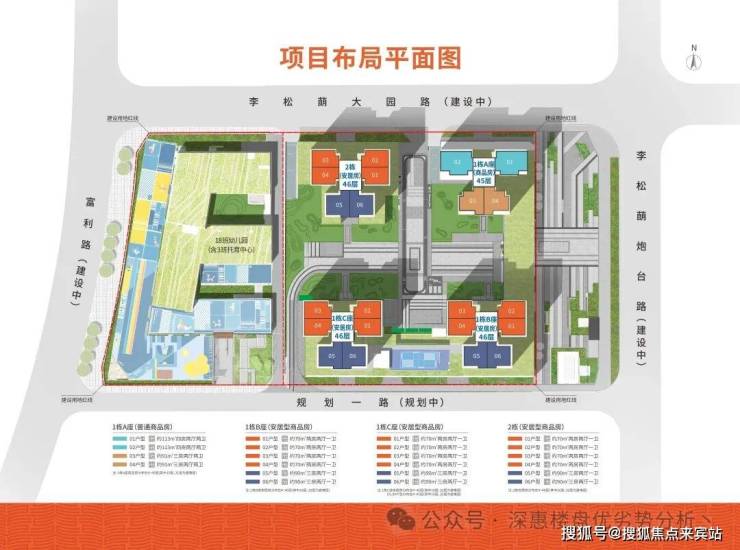 伟城贤德瑞府,总占地面积约1.4万㎡,总建筑面积约12.3万㎡,计容建筑面积约8.9万㎡,容积率6.0,绿化率40.01%,共由4栋45-46层住宅围合式布局组成,其中1栋A座商品房45层,1栋B/C座/、2栋安居房46层,3栋规划1所18班幼儿园。