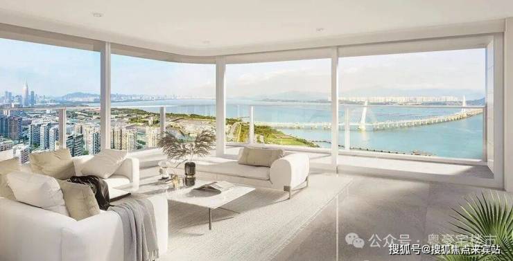 信悦湾主力户型客厅采用270°环幕无角柱设计,搭配弯弧玻璃、提升推拉门与大固定扇,将深圳湾大桥、歌剧院与城市繁华段全景引入室内,尽揽湾区美景。“L”形阳台则进一步延伸了观景界面,无遮挡直面海港景观。