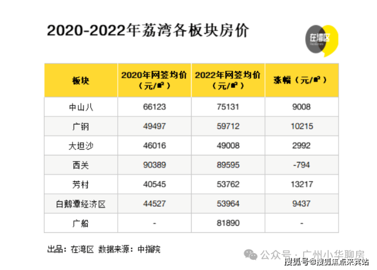 广钢新城2020年均价4.95万/㎡,2022年均价5.97万/㎡,2年涨幅1.02万/㎡,年均涨幅达10%!涨幅领跑荔湾各板块!