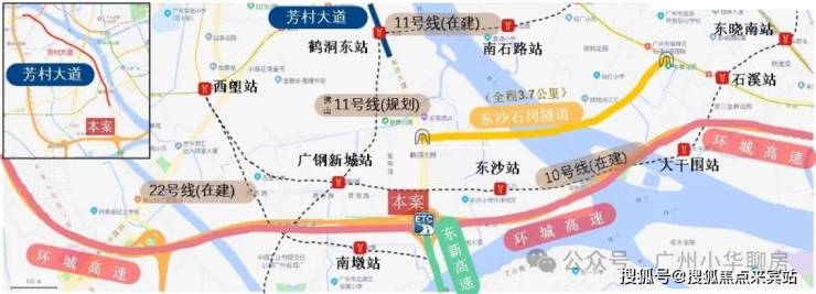 ※11号线鹤洞东站(在建):贯穿荔湾、海珠、天河、越秀中心四区,直达琶洲和广州东站;