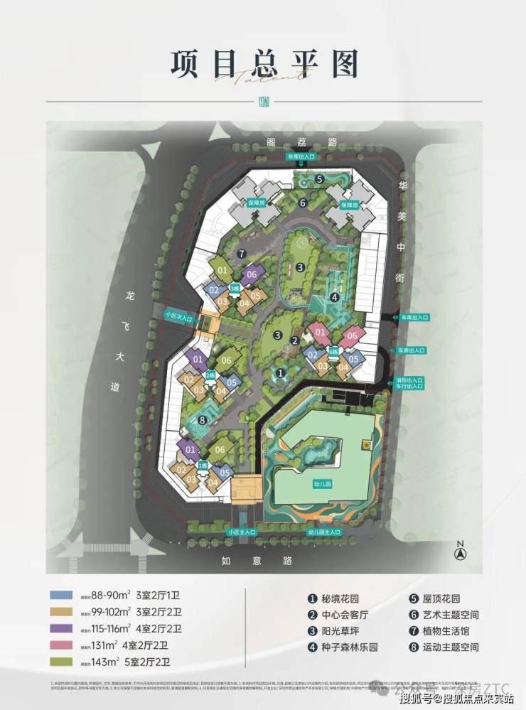•六大生活乐园:涵盖康养会客厅、亲子种子课堂、全民健身活动区、秘境主题花园、艺术花园、植物生活馆等六大主题乐园,为业主定制全龄化生活活动空间。十、建面约90-143㎡阔景美宅,尊享最佳户型设计