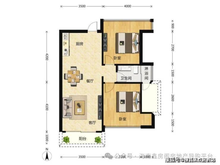 C户型两房一厅一卫:59㎡送21㎡ 实得80㎡。