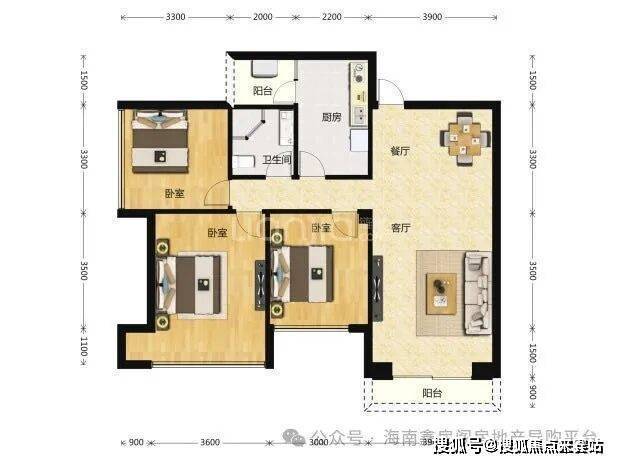 户型三房两厅两卫:116㎡送24㎡ 实得140㎡。