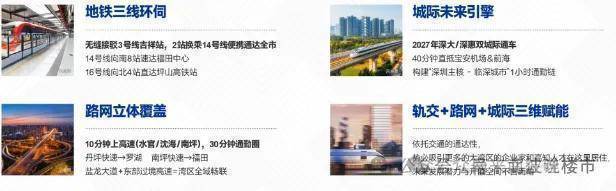 方洲无缝接驳地铁3号线吉祥站,两站换乘14号与16号线大运站,一部短剧的时间直达岗厦北。10分钟上水官高速、沈海高速,15分钟上外环高速,30分钟即达市内。