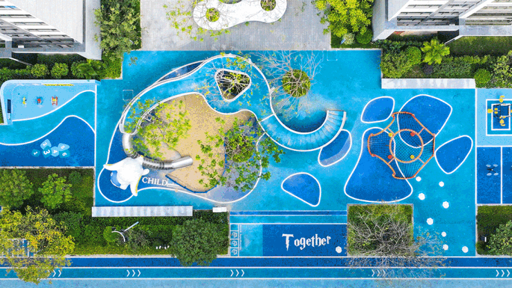 专门给孩子打造的童趣乐园,就像一片蓝色海洋,有不少家长和邻居在聊家常,追逐嬉戏的孩子也充满欢声笑语,一切尽是其乐融融。