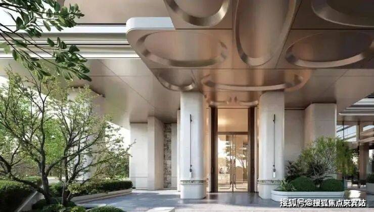 「后海招商玺」车行大门做了殿堂级落客区,设有天幕和水景,非常具备归家仪式感。