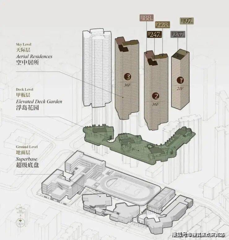 这次「后海招商玺」住宅小区设计采用“浮岛甲板”设计策略,四栋住宅落于甲板之上,独享甲板庭院花园。进而形成超级社区底盘 + 浮岛绿化甲板的垂直共生人居标杆。