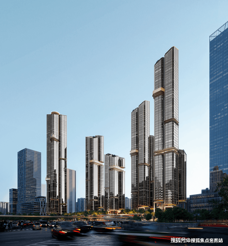 项目总建面26.3万平方米,由5栋超高层建筑组成,包含4栋150-240米住宅及1栋250米公寓。其设计突破传统豪宅范式: