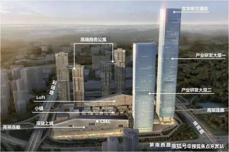 项目占地12.1371万平米,总建筑面积约120万平米,其中产业研发大厦约33.27万平米,LOFT约10万平米,豪华酒店约5万平米,公寓约17万平米,商业约16.7万平米,公寓建筑高度约224.5米,低塔约300米,高塔约388米。