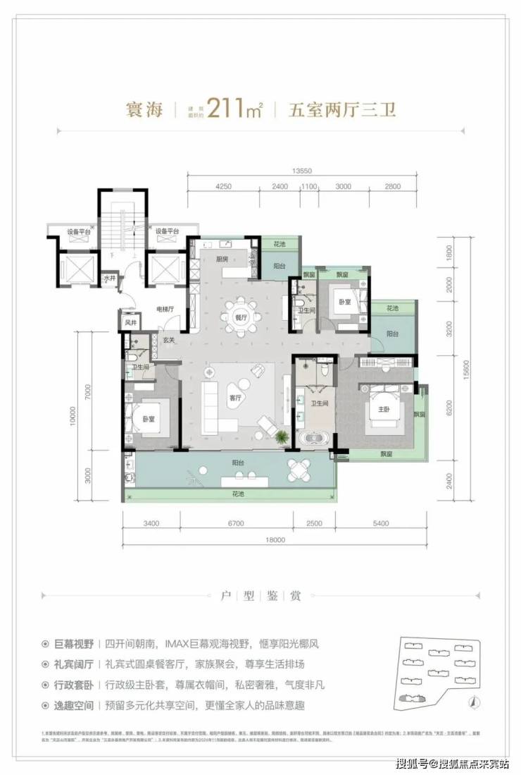 规划建筑面积约126-213㎡观海奢装大平层,约3.1米阔绰层高,部分户型创新设计270°全景飘窗主卧套、四开间朝南等,全成品高标奢装,营造全新舒居体验。