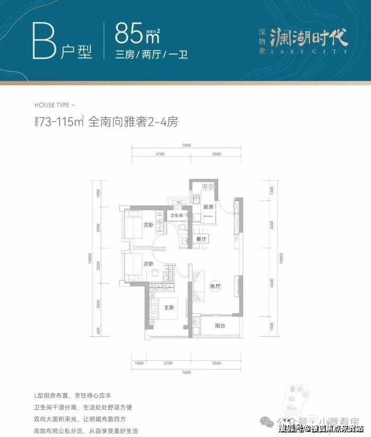 产品面积段:建面约73-115㎡全南宽奢2-4房