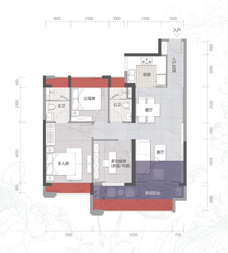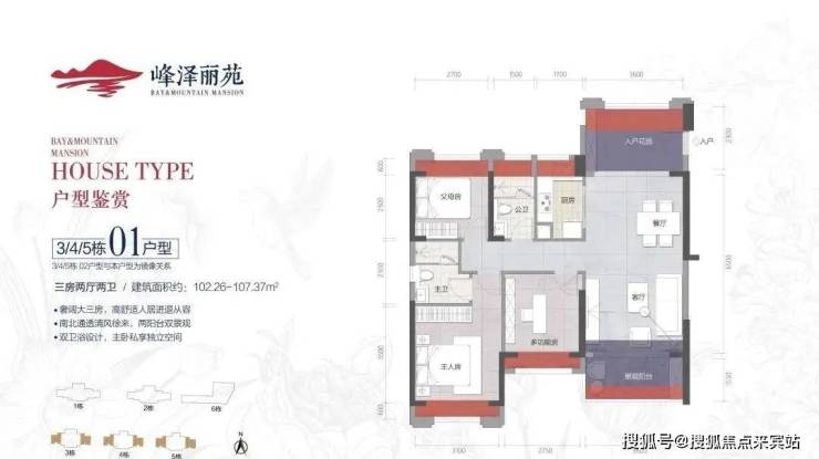 03/04户型97-102平三房两厅两卫舒适大三房是项目目前在售的性价比最高的明星户型,三房两厅两卫的户型设计,加上南向5.3米面宽超大阳台设计和主卧套间,超多赠送面积的飘窗令生活空间感十足。