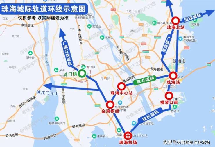 ②珠斗城际(规划中),为深珠城际的西延线,始发珠海北站,途经珠海中心站(鹤洲)、斗门白蕉镇、井岸镇、金湾红旗镇、斗门斗门镇,终点站为江门斗山。