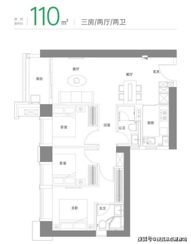 卧室标配飘窗,引入丰沛阳光,全家尽情舒展餐客一体贯通阳台,打造舒适、宽敞的欢聚天地奢享主卧,独享衣帽间、私人卫浴,自我非凡领地