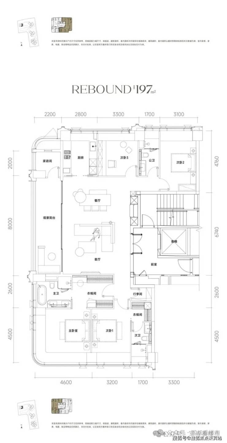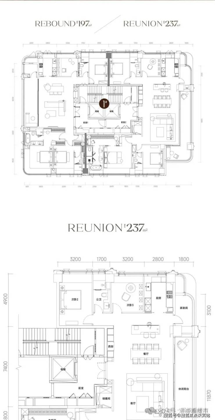 项目主力户型为197-235㎡四房大平层