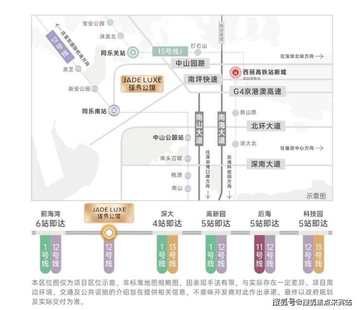 •15号线同乐关站(在建中,预计2028年12月开通),串联宝中/前海/深圳湾/西丽,也被称为深圳“一环线”,本项目为环线上的重要一环;
