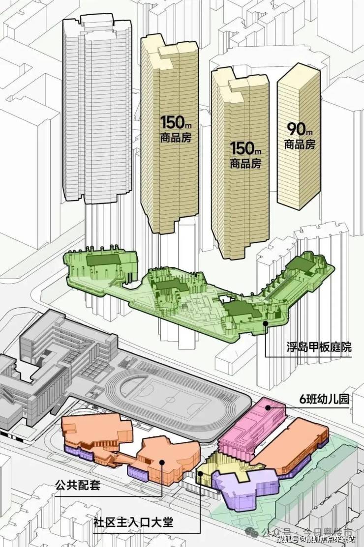 这次「后海招商玺」住宅设计采用“浮岛甲板”设计策略,四栋住宅落于甲板之上,独享甲板庭院花园。进而形成超级社区底盘 + 浮岛绿化甲板的垂直共生人居标杆。