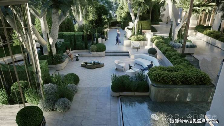 架空花园,利用架空层打造会所功能空间。