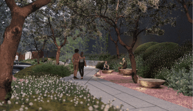 空间色彩、材质肌理以及植物皆是精挑细选,例如园内荔枝树、“荔枝”座椅就极具特色,不仅赏心悦目,还可以在这里戏水赏鱼、休憩互动,全年龄段业主都找到游玩乐趣。