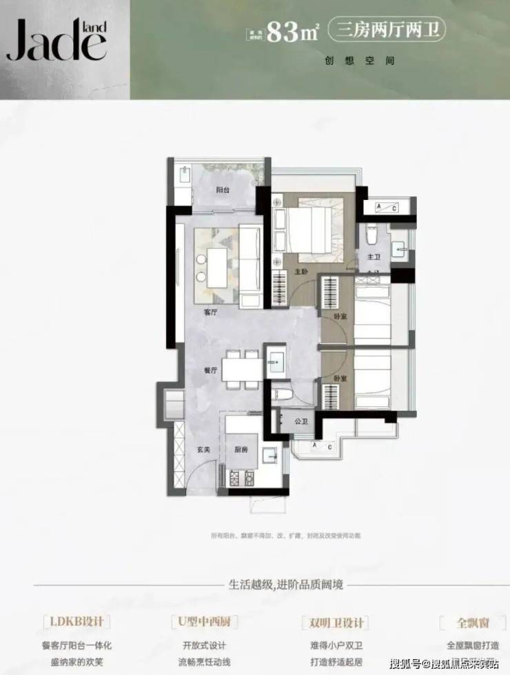 超高得房率:套内得房率高达92%-93%,在小面积段实现了三房两卫的强悍功能-2-1。