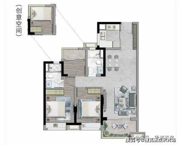 项目主推80-125㎡三至四房,其中80㎡2+1房采用动静分区设计,U型厨房布局合理,空间利用率高,性价比突出。