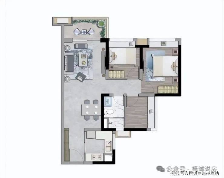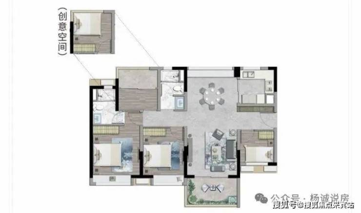 124㎡3+1房两厅两卫,四开间南向设计,空间尺度优越,尽显奢适生活品质。